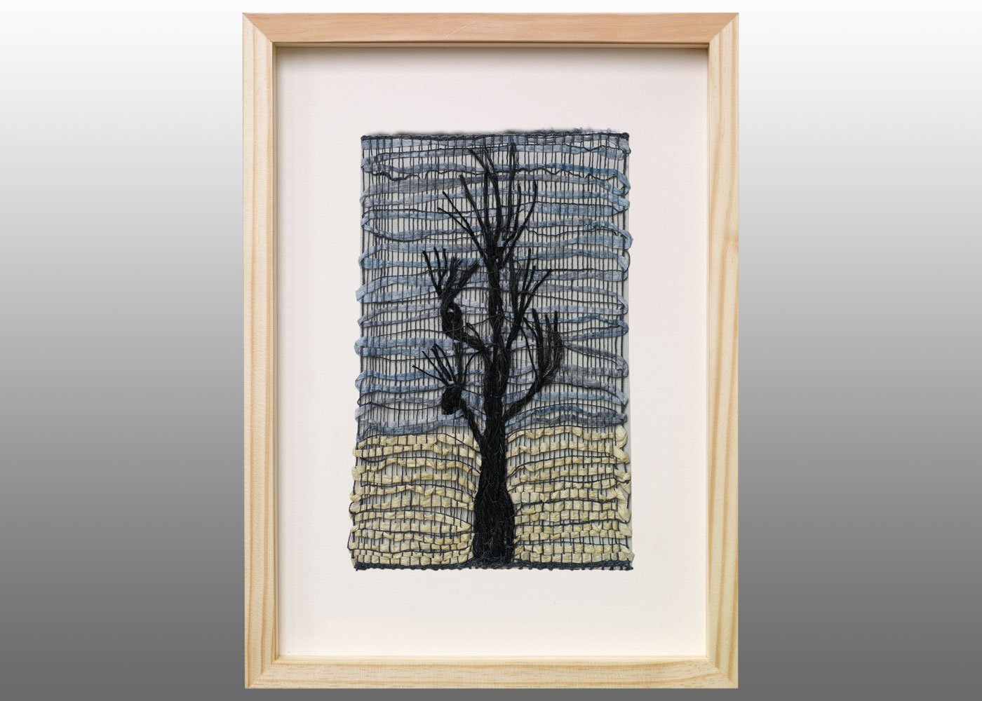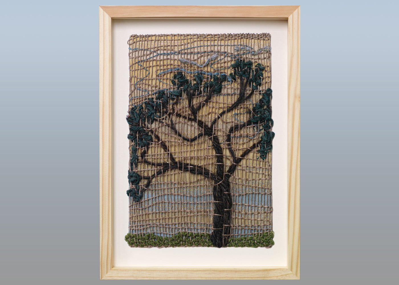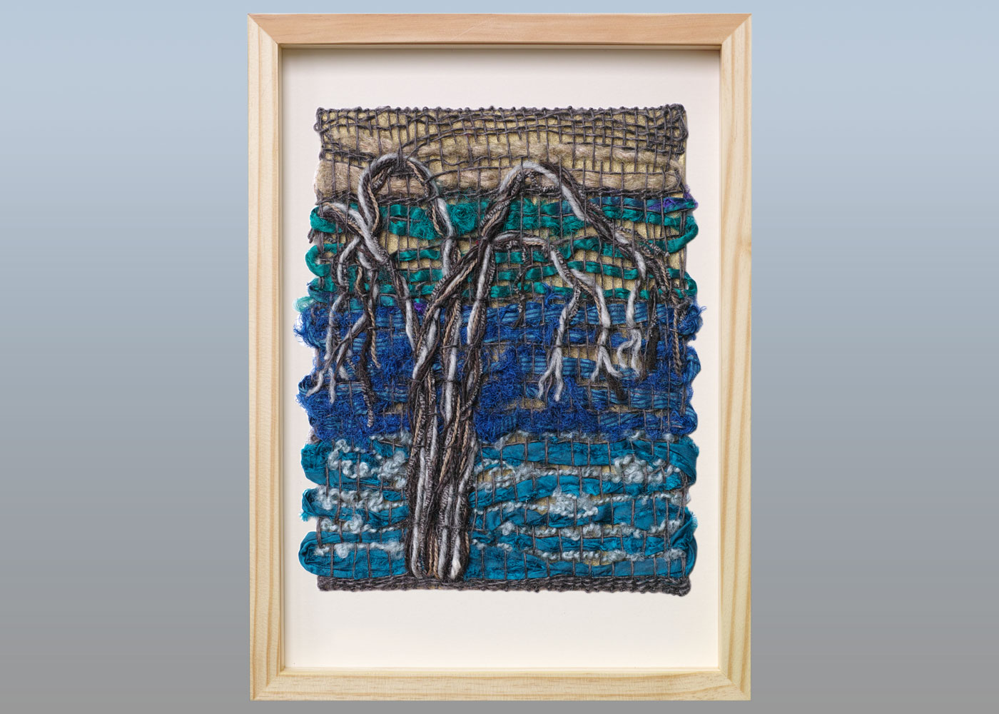 Observations of trees, woven using a variety of natural and fancy yarns. These are one-off original handwoven artworks. All works include a wooden frame with removable glazing (except Blackbird and Owl Tree, which are mounted in bespoke unglazed wooden frames). Uk Postage & Packing is included in the price.